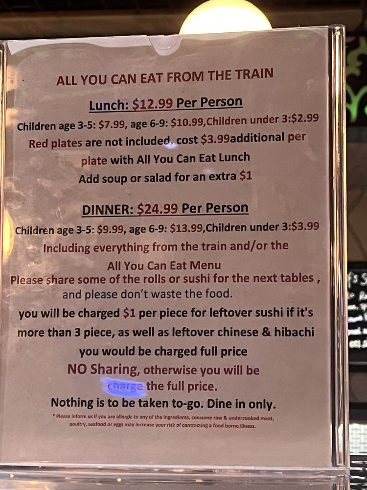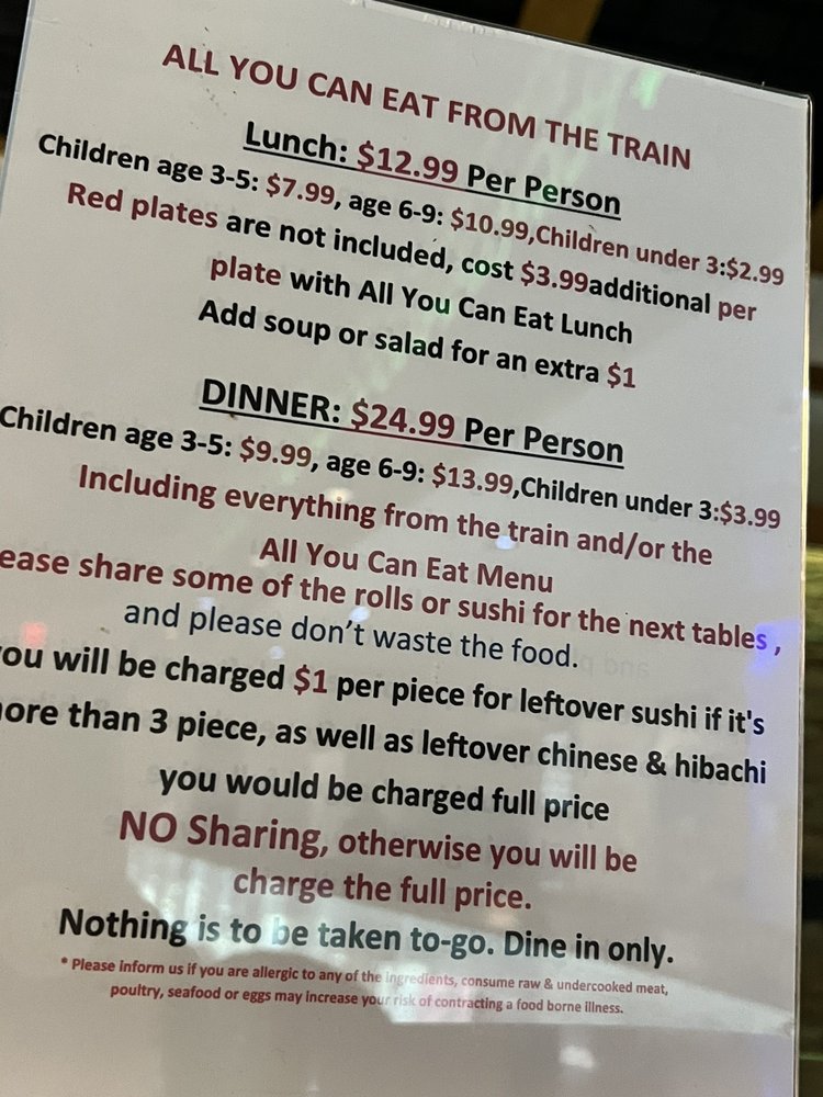 Sushi Train offers a variety of appetizers, soups, and salads in a casual setting with options for delivery and takeout. Located in Nashville, TN, the restaurant provides a unique experience with a conveyor belt serving fresh and tasty sushi. Customers mention the excitement of the rotating sushi and the fun atmosphere, especially for children. Some highlight dishes include the Egg Drop Soup, Kani Salad, and Seared Pepper Tuna. With friendly staff and reasonable prices, Sushi Train is a popular choice for those looking for a sushi dining experience. The all-you-can-eat option is a great value, with fresh and delicious food being served. Overall, Sushi Train offers a fun and enjoyable dining experience with a mix of Japanese and Chinese influences.